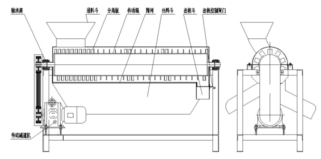 該設備主要用於核果類的核肉分離。例如:橄欖、青梅、李子、杏子、桃等。水果通過轉子上不同角度的分離板,得到塊狀果肉,從篩網孔中落入出料鬥,核由數個分離板組成的螺旋,向出核處排出。篩網和分離板之間的間隙,視處理物料核的大小而定。