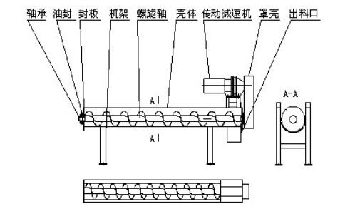 該設備是利用減速機帶動螺旋回轉,推移物料以實現輸送目的的機械,具有結構簡單、截麵積小,便於封閉輸送,可多點加料或卸料等優點。