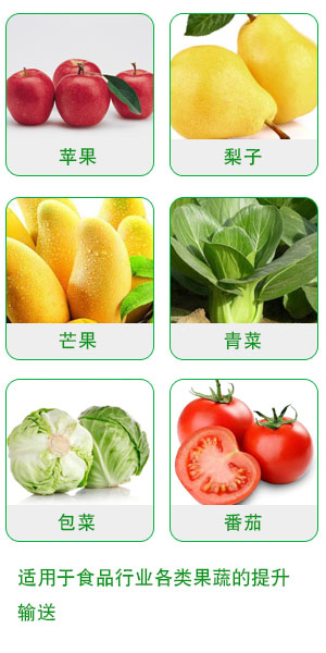 該提升機采用片基橡膠帶擋板或輸送皮帶作為載體,適用於食品行業各種果蔬的提升輸送等。該機可根據客戶要求設計噴淋和集水裝置。該機利用傳動減速機帶動主動輥使輸送皮帶做回轉運動,從而使物料達到輸送或提升的目的,它既能實現水平輸送、又能實現傾斜提升輸送,傾斜輸送時提升角度一般不得大於45°。具體形式可根據用戶不同的工況環境選用。該機采用國外先進工藝技術加工,具有結構緊湊、噪音低、使用方便、便於敞開輸送、提升等優點。是輸送提升各類果蔬的理想設備。