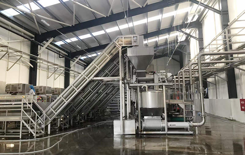 (6)均質、脫氣。在料液溫度約60℃時進行均質處理,均質壓力為20MPa。然後將液料打入真空脫氣機,在真空度0.098MPa下進行真空脫氣。