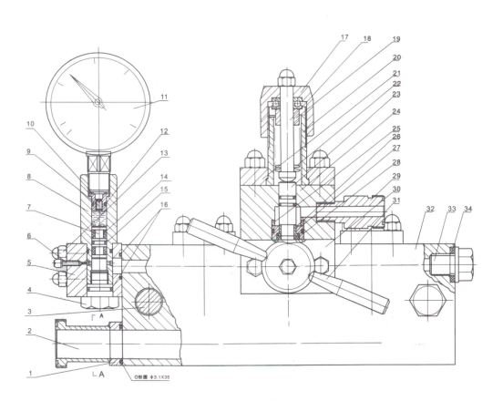 注意將手輪上的蓋形螺帽在開麵前順時針先鬆開,讓高壓彈簧呈自然狀態;3.對於<5>改用電流表監視,拆下壓力表,用M20×1.5螺栓將壓蓋螺孔封閉,壓力表作為定期(通常為一個月)校對之用;4.對於<7>和<8>可以拆卸壓力表加注有機矽油或改換壓力表組件.