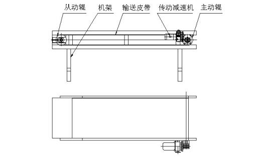 該機主要由機架、 輸送皮帶、主動輥、從動輥、傳動減速機等部件組成。