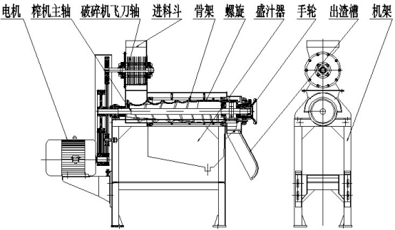 該設備是破碎與螺旋榨汁一體,對果蔬進行先破碎後榨汁,主要適用於對各類果蔬的破碎取汁。